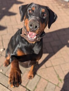 Cerberus is a pleasure around food; he’s not food aggressive, isn’t fussy, doesn’t snatch, and will happily wait when asked. You can even put your hand in his bowl while he’s eating. He knows his basic commands (sit, lay, wait) and has done some scent work, which he really enjoyed.
